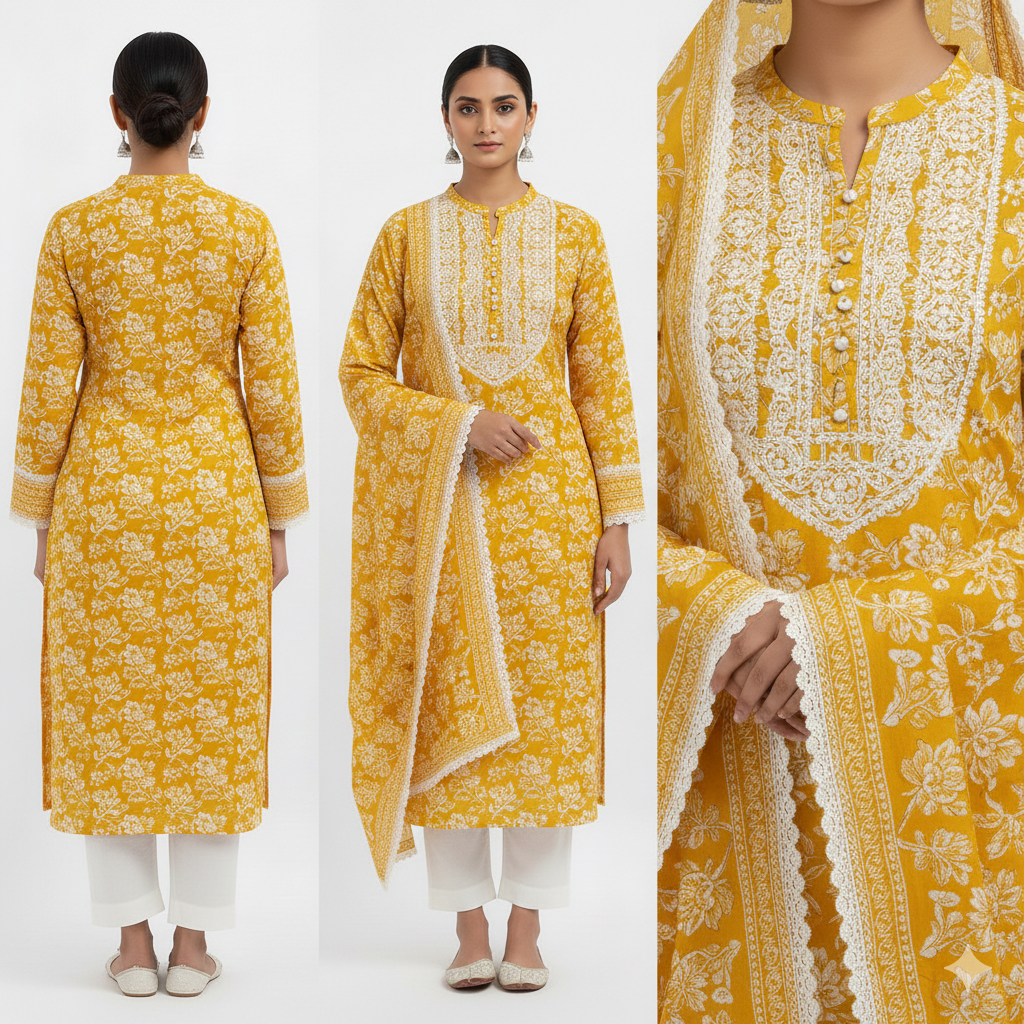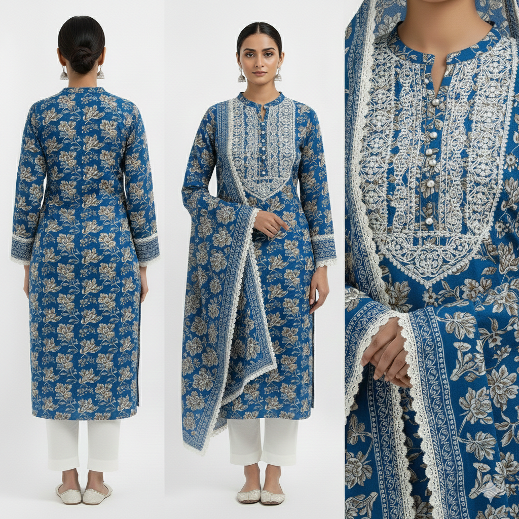 Upgrade your wardrobe with this stylish women’s three piece set, designed to offer comfort, elegance, and a timeless look. Crafted from premium quality fabric, this outfit features a beautifully designed kameez, a comfortable salwar, and a matching dupatta. Perfect for daily wear, office, casual outings, festivals, and family occasions, this three piece blends traditional charm with modern style.